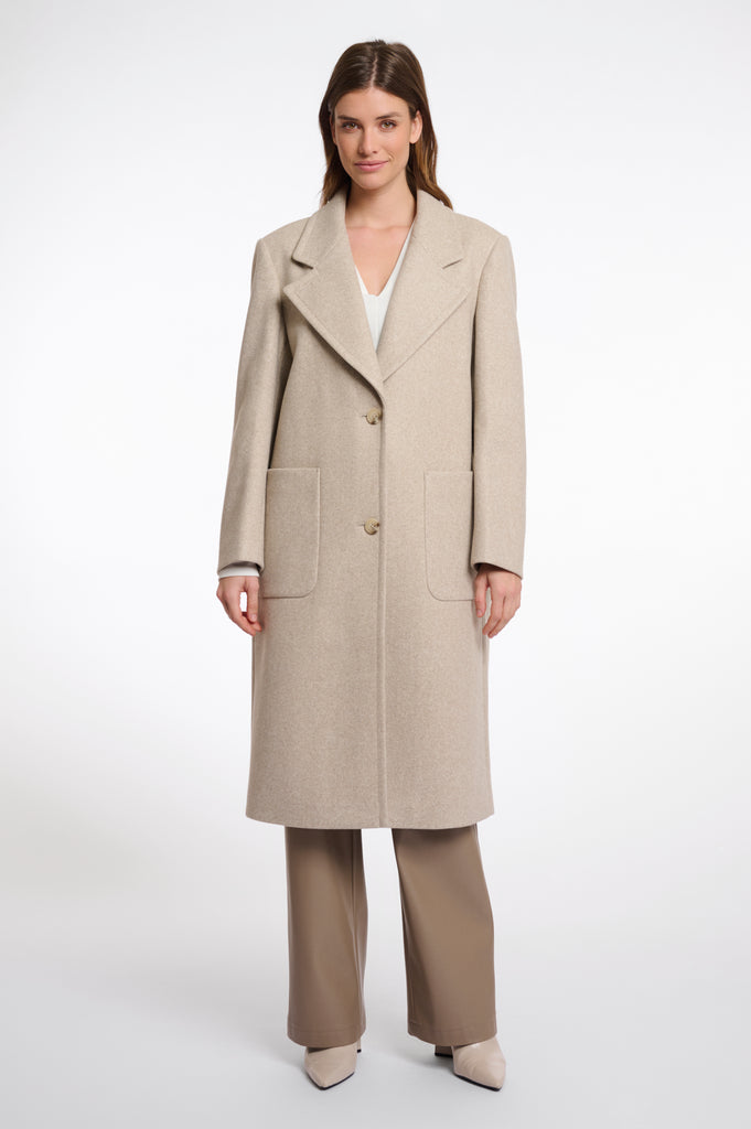 This longline coat brings timeless elegance to any wardrobe. Designed with a classic lapel collar, button closure, and spacious front pockets, it balances functionality with refined style. Its versatile silhouette makes it perfect for layering, offering effortless sophistication from day to night.